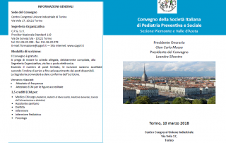 22 02, 2018 Convegno della Società Italiana di Pediatria Preventiva e Sociale Convegno della Società Italiana di Pediatria Preventiva e Sociale Appuntamenti passati| 10 Marzo [...] Continua a leggere