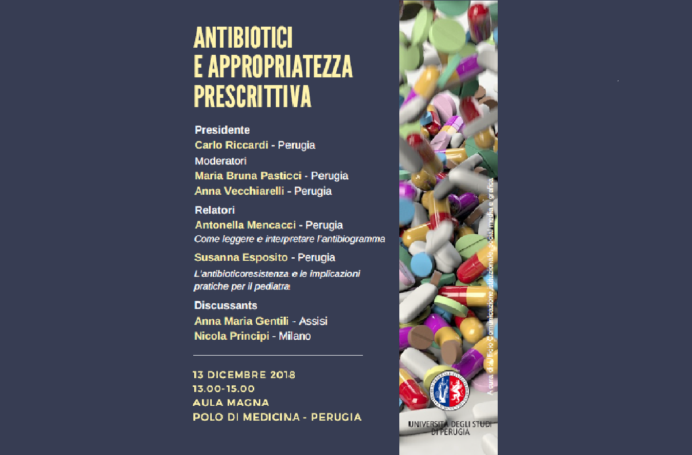 Il Congresso “Antibiotici e Appropriatezza Prescrittiva” si svolgerà presso l’Aula Magna del Polo di Medicina di Perugia in data 13 dicembre 2018.