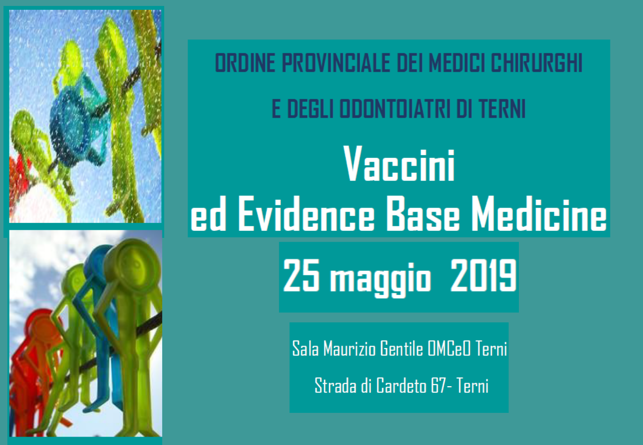 Il corso “Vaccini ed Evidence Base Medicine” si terrà presso la Sala Maurizio Gentile OMCeO a Terni in data 25 maggio 2019.